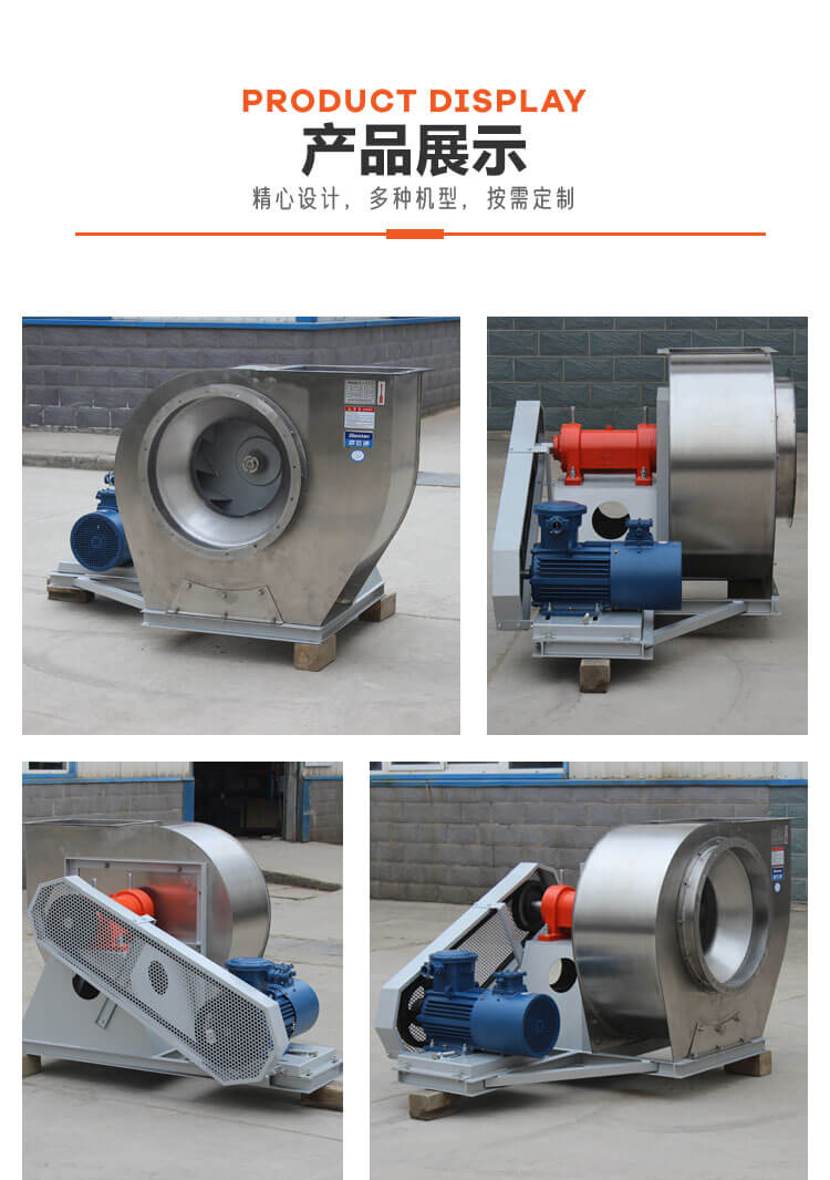 不銹鋼離心風(fēng)機:不銹鋼材質(zhì)具有較強的抗腐蝕性能,適用于對腐蝕要求不是特別嚴(yán)格的環(huán)境。