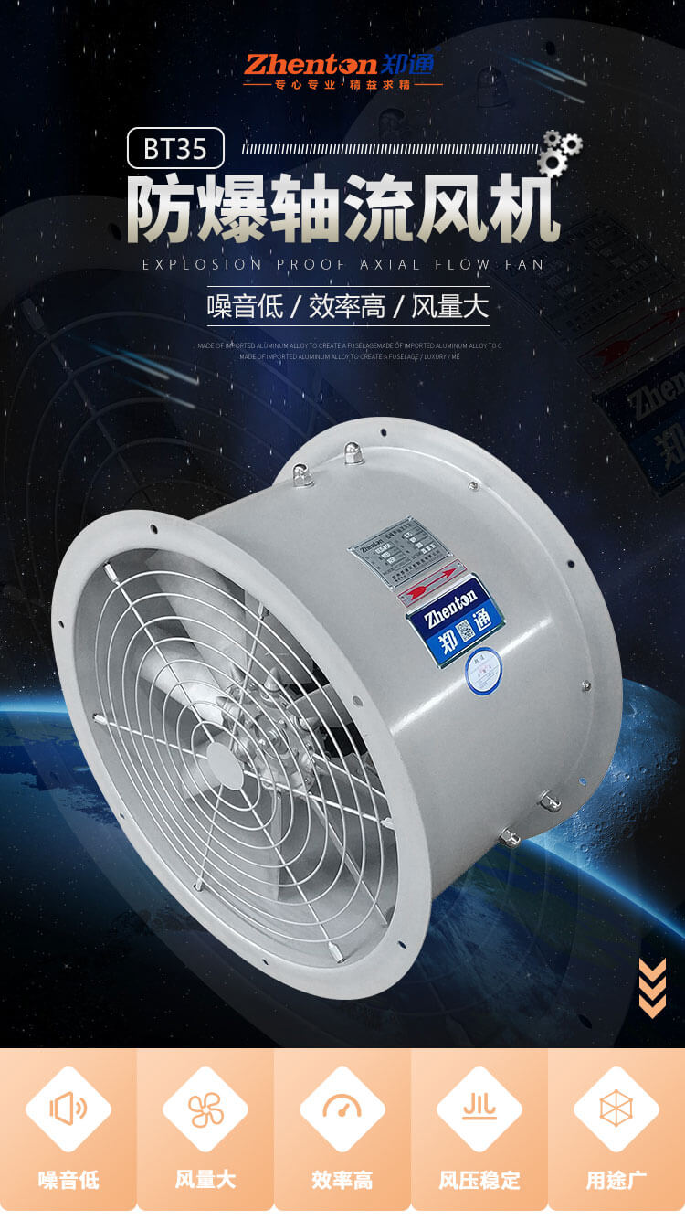 BT35系列防爆軸流通風(fēng)機可用一般工廠、倉庫 、辦公室、住宅內(nèi)通風(fēng)換氣,或加強暖氣散熱之用,也可在管道內(nèi)作為加壓使用,使用T35、BT35的介質(zhì)應(yīng)為無腐蝕性及顯著粉塵,其溫度不超過40℃。
